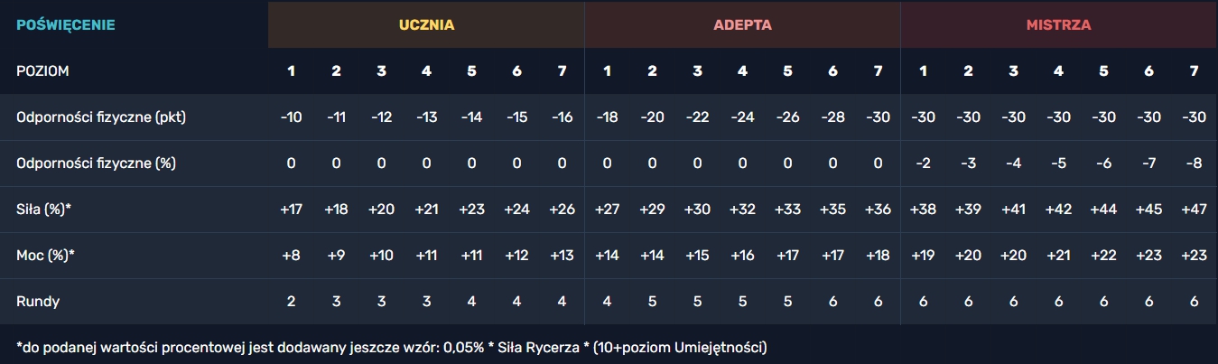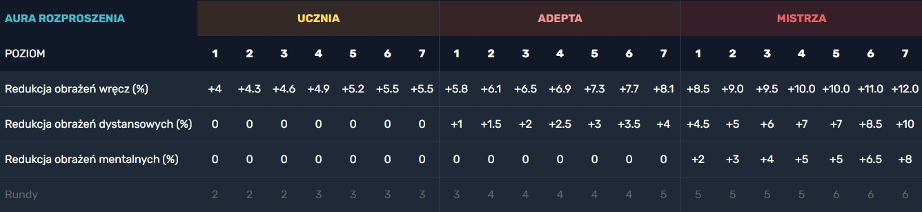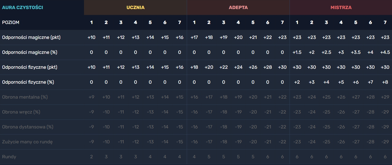 Nowa statystyka zwiększa szansę na rzucenie buffa, a przy okazji może wydłużyć jego czas trwania czy dorzucić coś ekstra do tych krótkich, trwających max jedną rundę lub tych, które w ogóle nie mają czasu trwania (jak Leczenie czy Odczarowanie). Po pierwszych testach obniżyliśmy wymagania i większość z Was stwierdziła, że teraz jest w sam raz. Dodatkowe efekty też się spodobały, więc uznaliśmy, że jesteśmy w domu. Być może w przyszłości jeszcze to rozbudujemy i dodamy nowe właściwości, ale na razie nie wybiegajmy aż tak daleko. ;)
