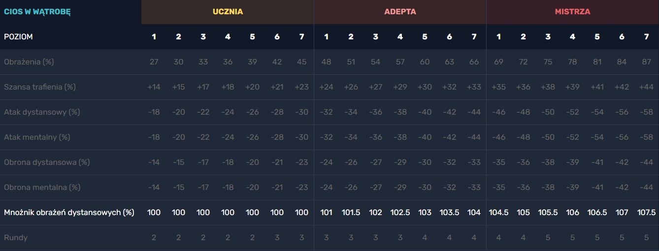 - Cios w wątrobę - przejął bonus do DMG w atakach dystansowych z Fronta - teraz będzie debuffem typowo pod klasy dystansowe.