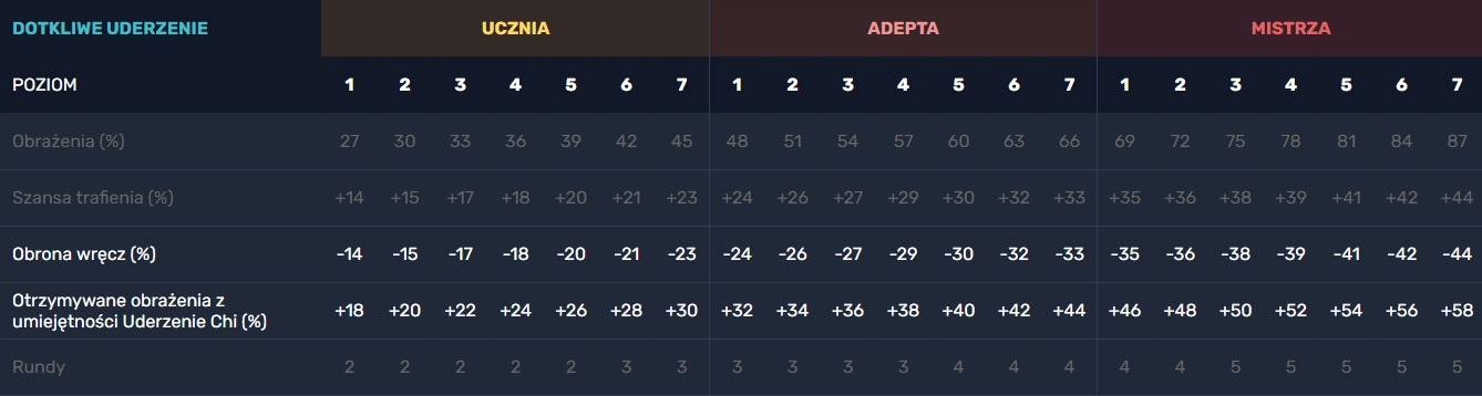 - Dotkliwe uderzenie - będzie uzupełniać debuff Front kicka i wzmacniać Uderzenie Chi.