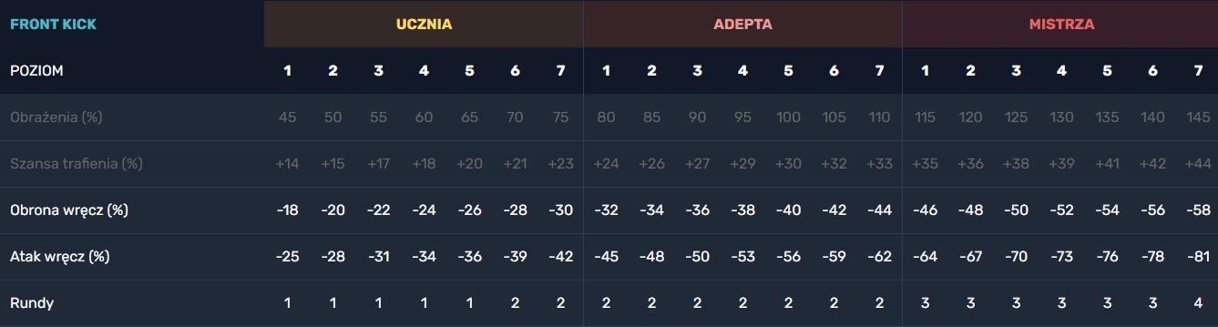 - Front kick - wraca do roli openera. Dostaje mocniejszy (względem PTR) debuff obrony wręcz przeciwnika, bo jednak jako debuffer atakuje ostatni.