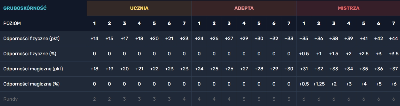 Chcieliśmy, żeby Gruboskórność Barbarzyńcy była bardziej użyteczna na endgame, kiedy postaci mają już wysokie odporności. Testy pokazały, że zmiana przypadła Wam do gustu, więc na poziomach mistrza skill będzie dodatkowo dawał % odporności. Poza tym po PTR1 zwiększyliśmy też ilość resów, jakie daje na niższych poziomach.