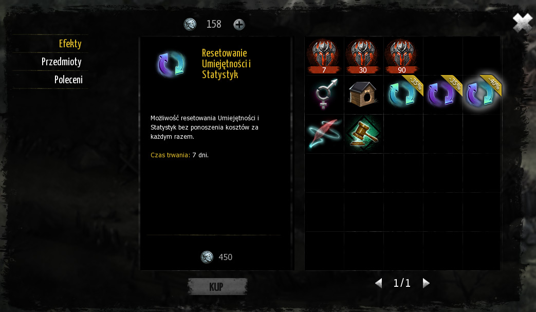 Po testach na PTR1 dodaliśmy możliwość wykupienia abonamentu na resety - osobno dla skilli i statystyk. Po PTR2 poszliśmy o krok dalej: obniżyliśmy ceny tych buffów do 260 platyny, a dodatkowo wprowadziliśmy buff łączony, czyli reset skilli i statystyk jednocześnie, w cenie 450 platyny. Podane ceny są promocyjne i póki co takie pozostaną (na czas nieokreślony).