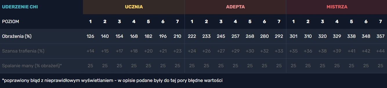 - Uderzenie Chi - DMG na poziomach adepta i mistrza zostaje obniżony, czyli tak jak na PTR.