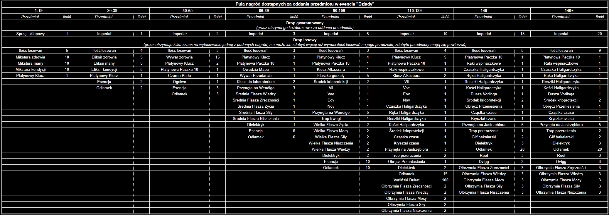 *W czasie trwania eventu nie można oddawać NPC-om przedmiotów spoza przedziału poziomów. Warto zwracać uwagę na opisy przedmiotów.