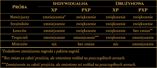 - Balans efektów otrzymywanych na arenach Prób Loży: