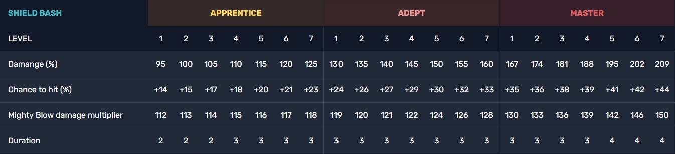 - Shield Bash - for now, we won’t be increasing the damage of the skill and the debuff works like intended, so we’re leaving it as it was during the tests.