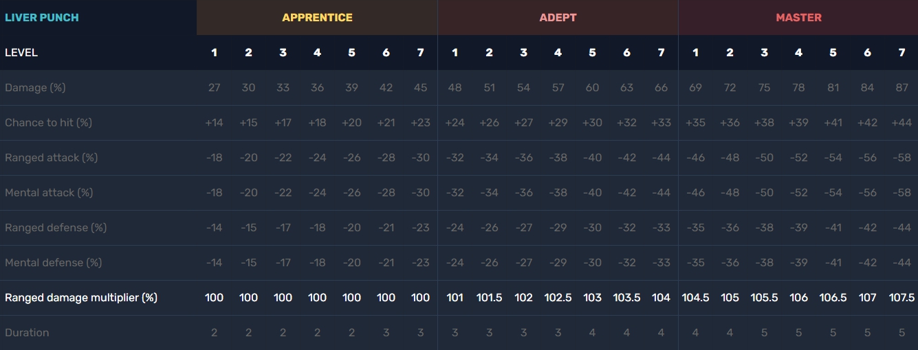- Liver Punch - the effect that increases ranged damage has been transferred here from Front Kick. This skill will now synergize only with ranged classes
