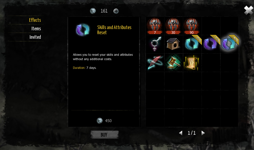 After PTR1, we added the possibility to buy reset subscriptions - separate ones for skills and attributes. After PTR2, we went a step further: we lowered the price of those buffs to 260 platinum and also introduced a combined buff, for both skills and attributes, for 450 platinum. The prices above are promotional and they’ll stay that way for now (for an indefinite time).