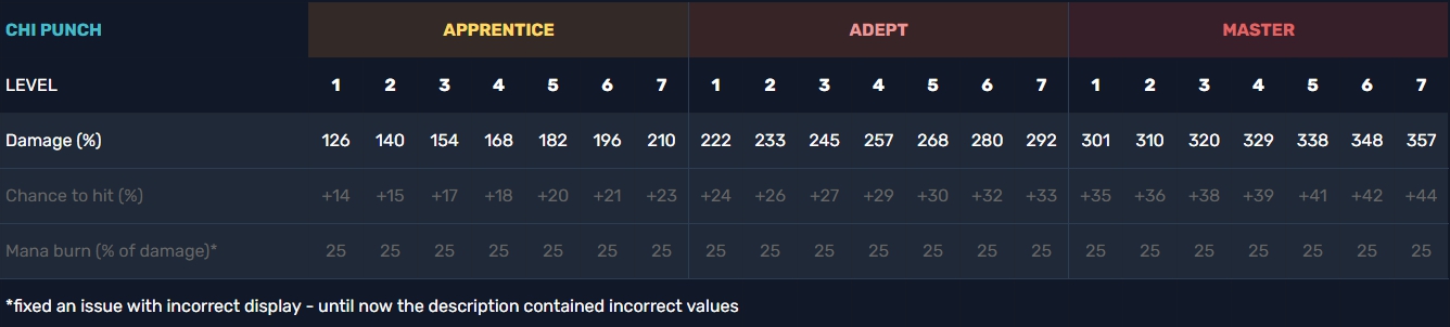 - Chi Punch - damage on adept and master will be lowered, same as on PTR