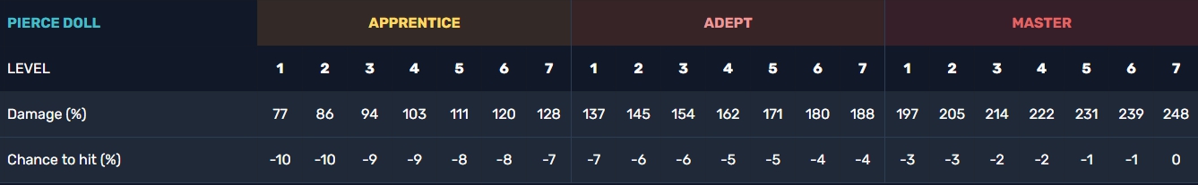 Pierce Doll - we want to normalize the damage of all debuffers, so the skill will deal less damage than before. In addition to that, we decided to also decrease its accuracy after PTR2.