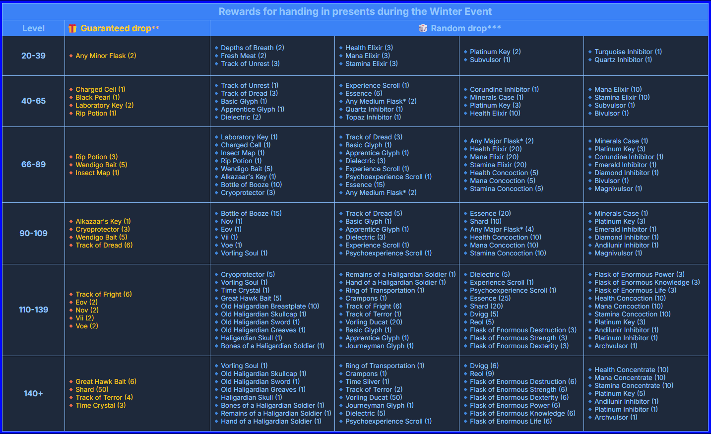 - Replaced hats and stars with presents in task enemies at all level brackets.