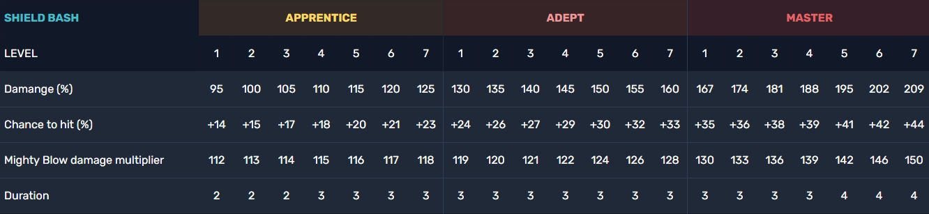 - Added new skill: Shield Bash - it deals crushing damage and debuffs opponents with increased Mighty Blow damage.