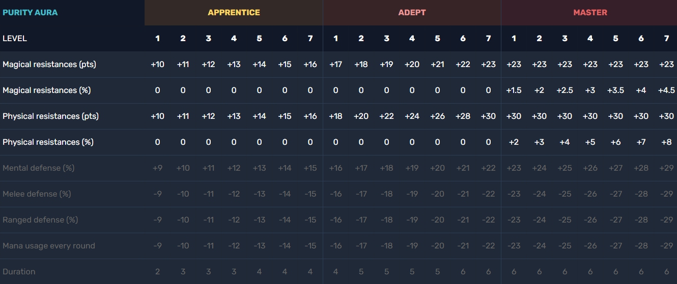 - Purity Aura - added percentage resistance increases at master levels, adjusted values.