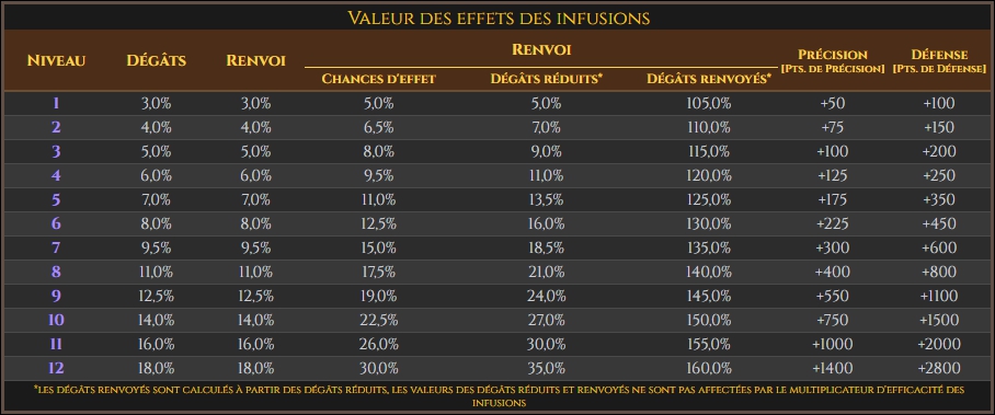 - lorsque la Puissance de l’adversaire est entre 70 et 130% de la Puissance du joueur : l’infusion fonctionne proportionnellement à la différence de Puissance ;