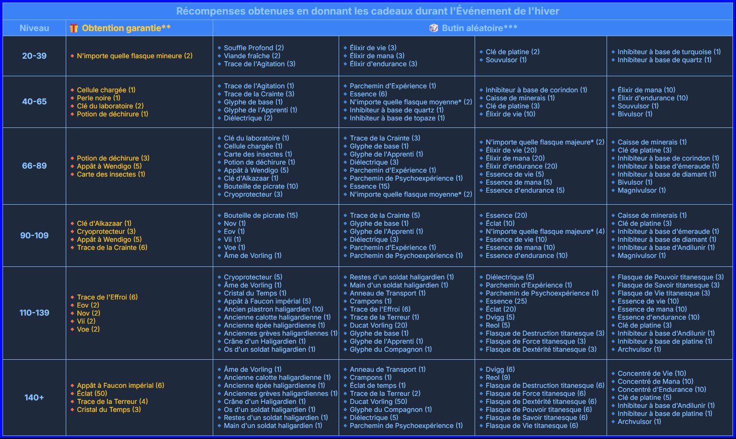 - Mise à jour des récompenses pour l’ouverture des cadeaux.