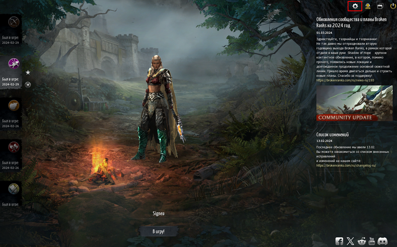 Начните с окна выбора персонажа. В правом верхнем углу вы найдете значок шестеренки, который приведет вас к настройкам.