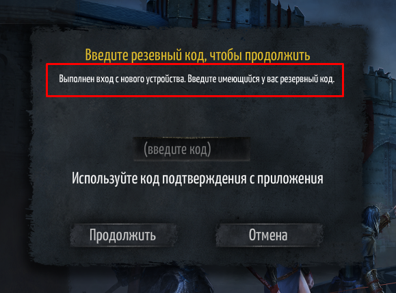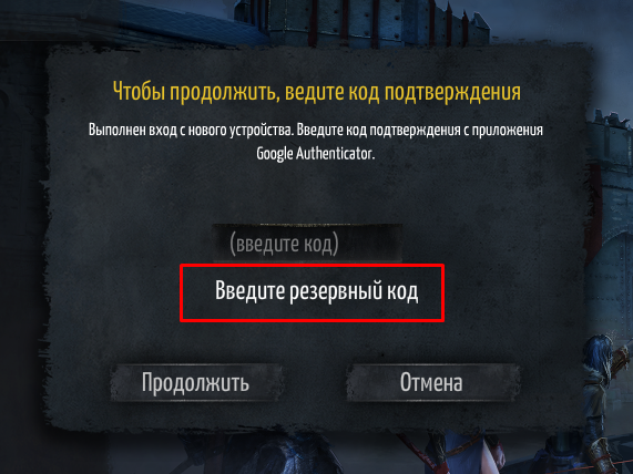 Если вы выбрали уровень безопасности 3 или 4, вы все равно можете войти в свою учетную запись, используя резервные коды. После попытки входа в игру выскочит окно с просьбой ввести код GA или резервный код. Выберите вариант ввода резервного кода, введите код в соответствующем поле и нажмите «Продолжить».