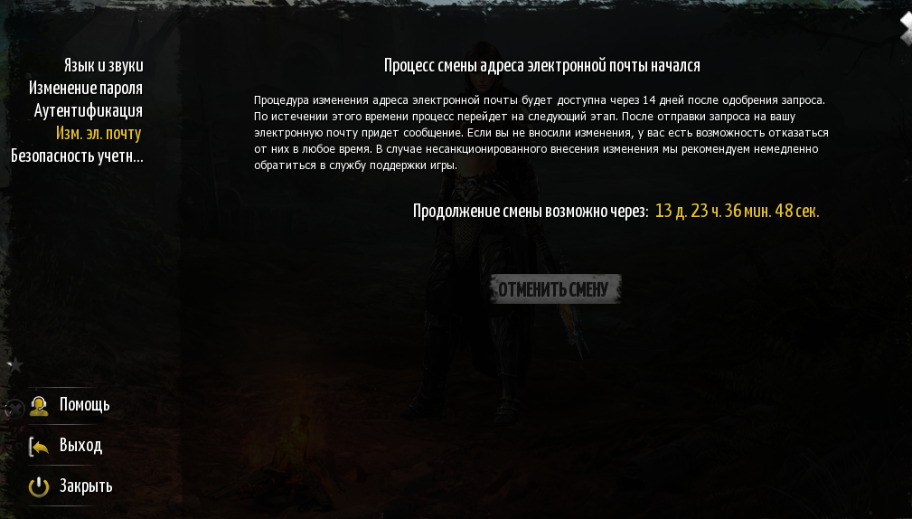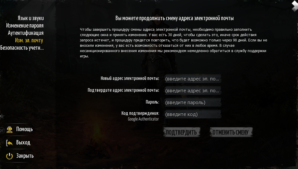 Через 14 дней окно обновится. Чтобы продолжить процедуру, вам необходимо ввести новый адрес электронной почты и подтвердить его паролем и кодом из GA.