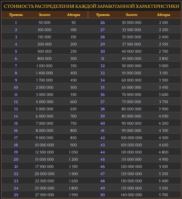 - насыщение уровня мастерства — происходит в окне усилений Ложи за айтары. Стоимость насыщения: