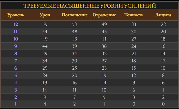 Каждый следующий уровень требует насыщения определенного количества уровней любых усилений: