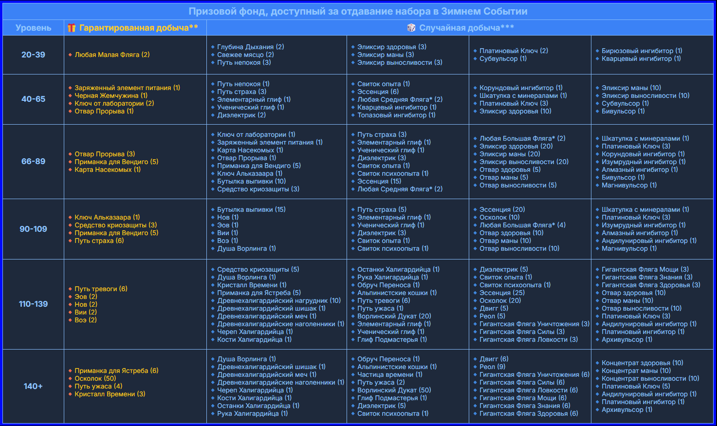 * Вы не можете взять задание или открыть набор для диапазона выше вашего уровня. Вы можете только обменять звездочки/шапочки на набор из более высокого диапазона.