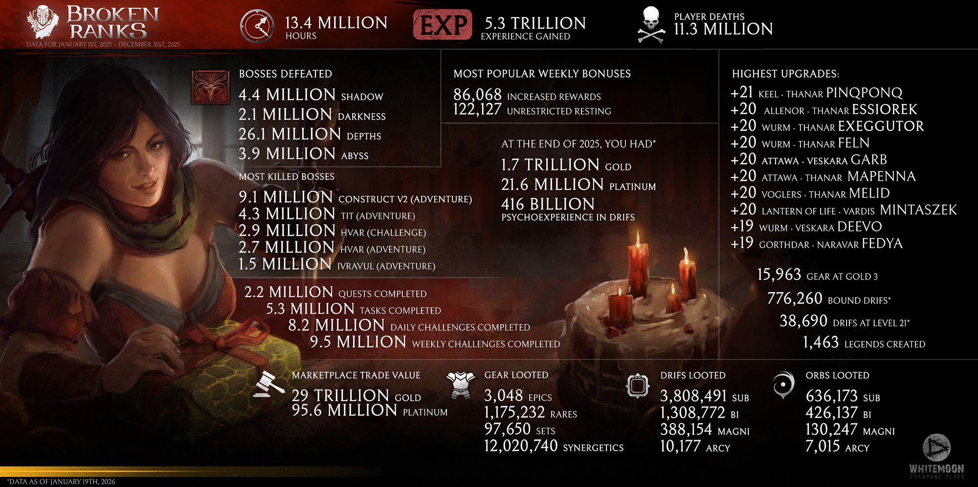 Четыре года существования Broken Ranks — это ку-у-уча сражений, дропа, легендарных предметов (и еще больше попыток их улучшить) и прекрасных воспоминаний. Спасибо вам за то, что вы есть, за ваши отзывы, скриншоты (да, и за мемы тоже :P), отчеты об ошибках и все конструктивные дискуссии.